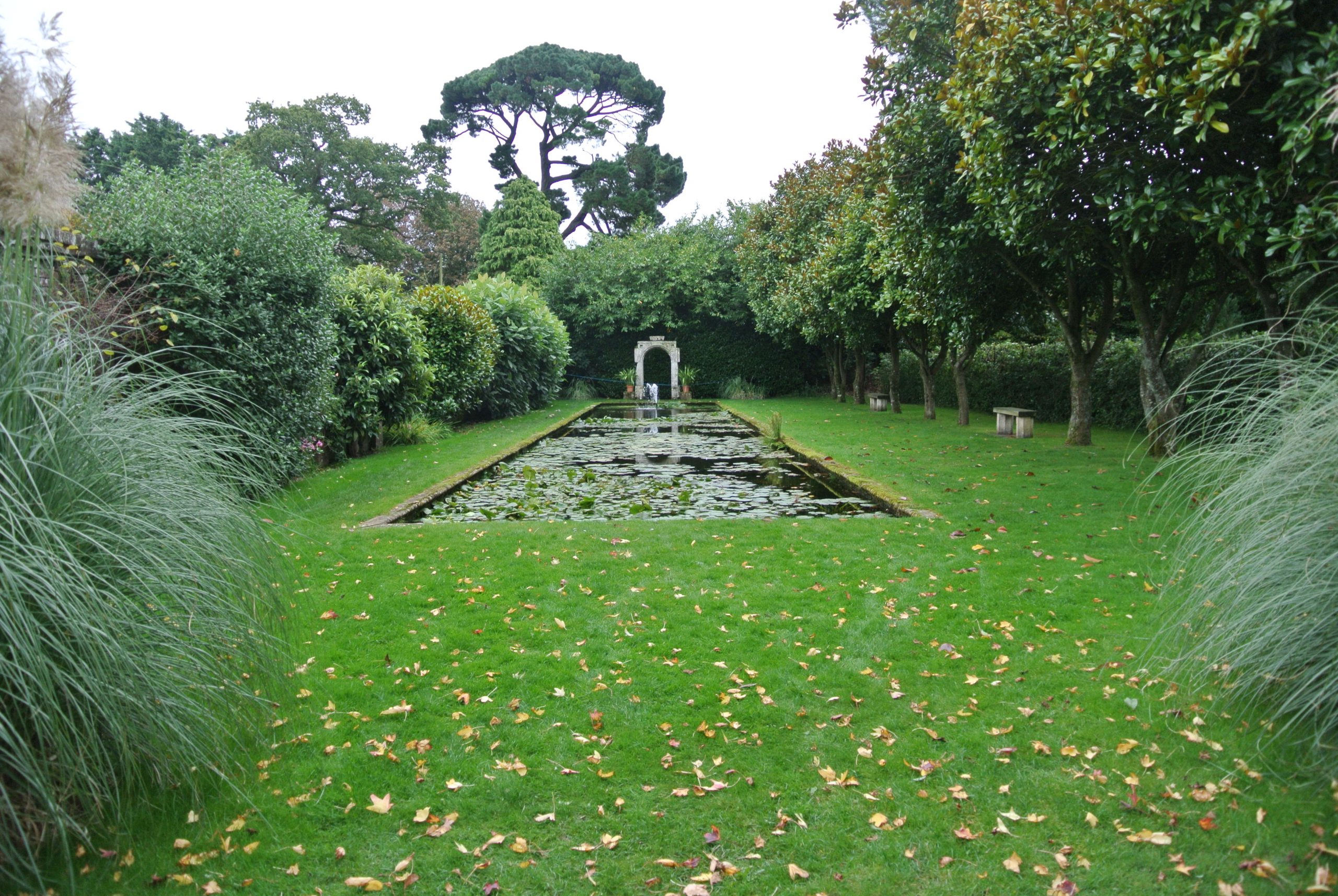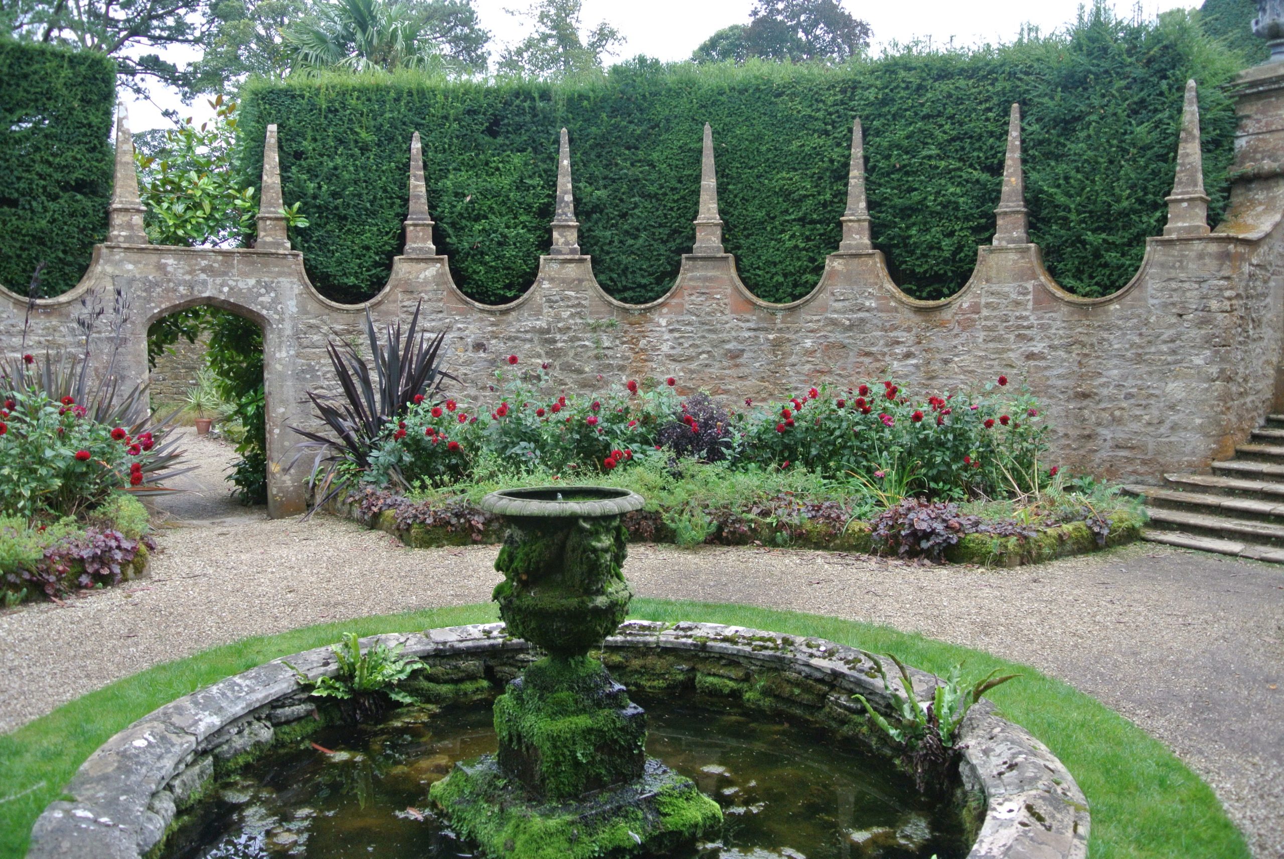 The gardens date from 1891 and are Grade I Listed. They contain Yew pyramids and have water as recurring theme.
