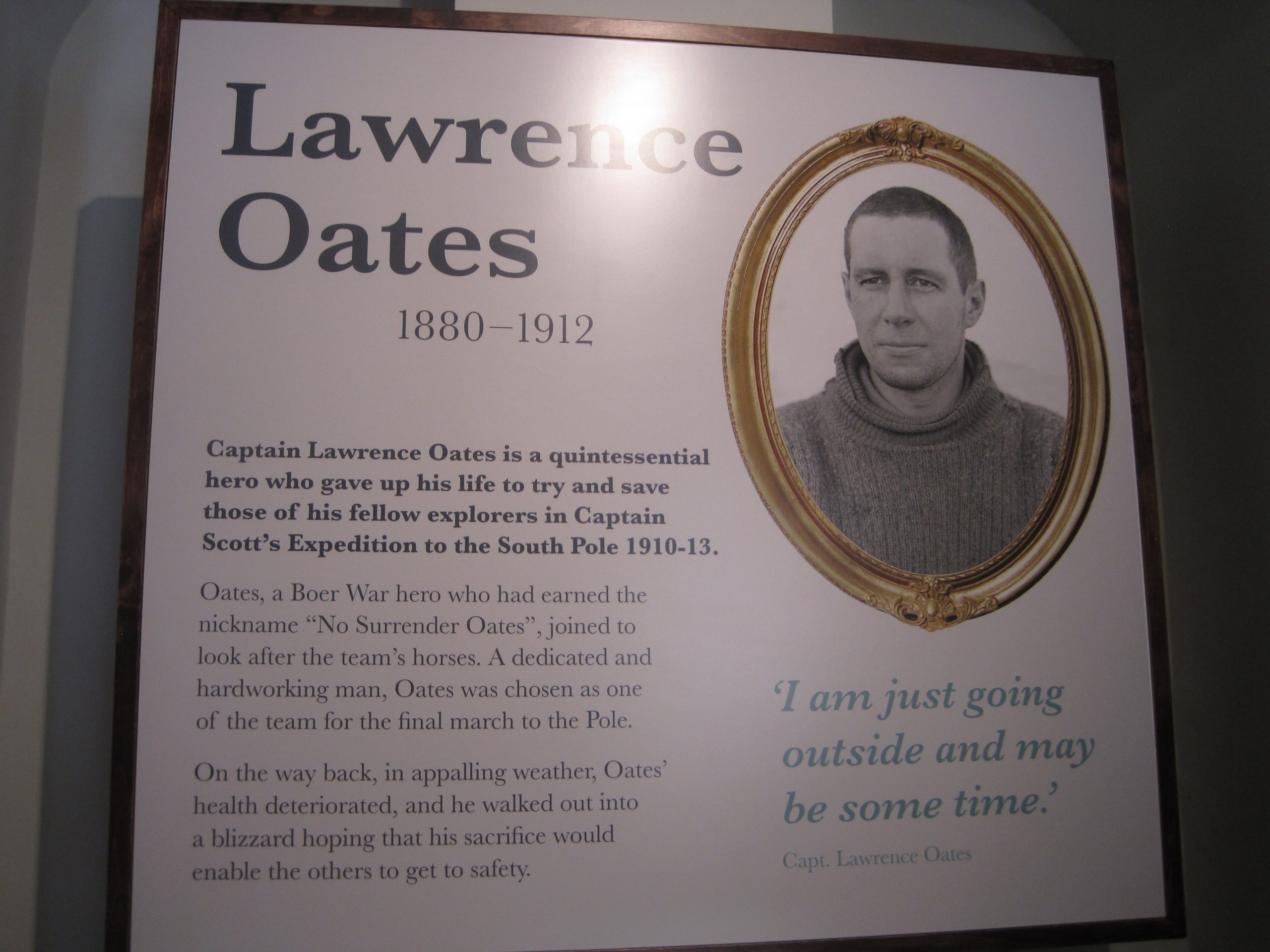 Captain Lawrence Edward Grace “Titus” Oates was a British army officer, and later an Antarctic explorer, who died during the Terra Nova Expedition. Oates, afflicted with gangrene and frostbite, walked from his tent into a blizzard.