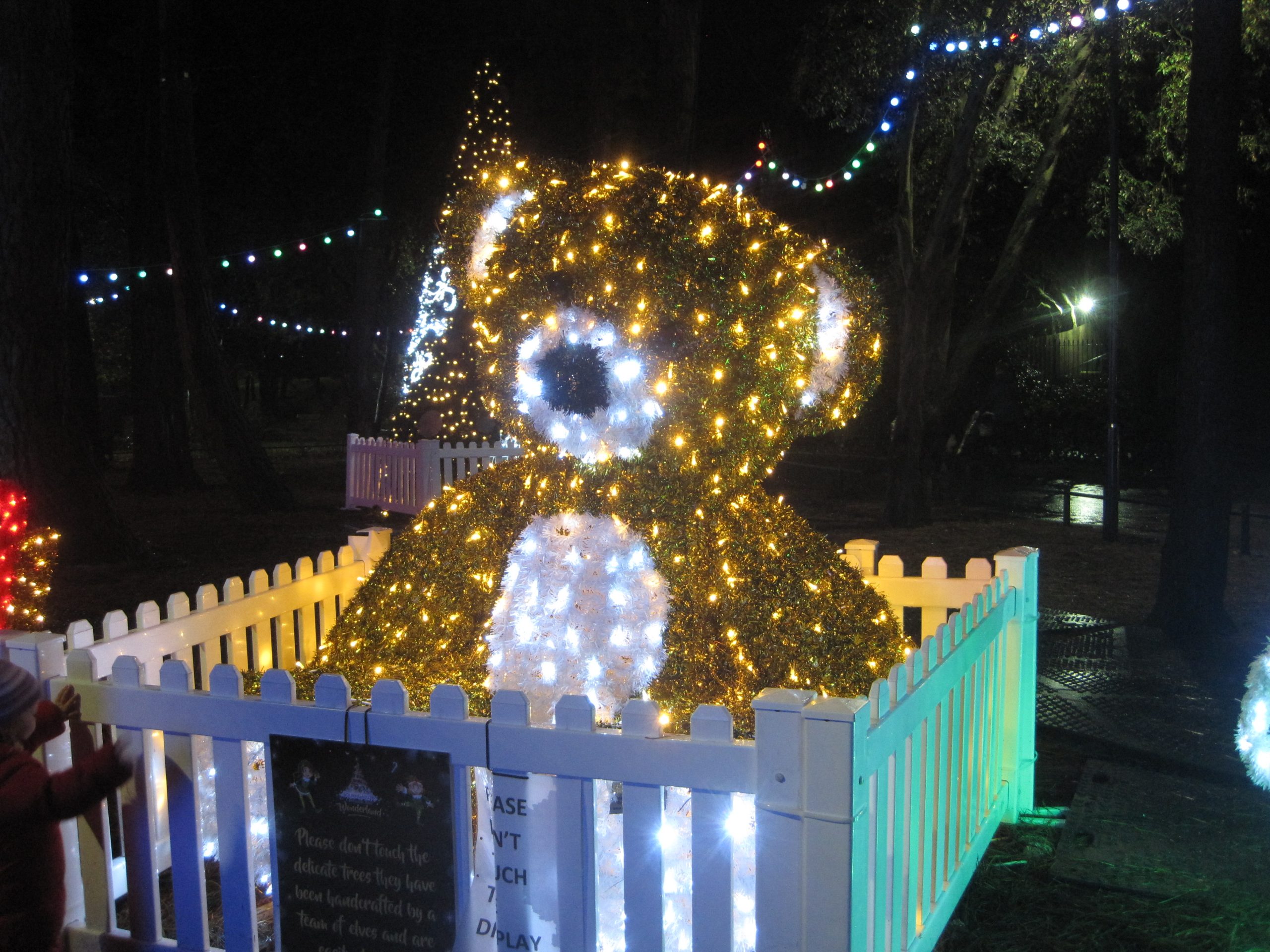 The gardens feature themed trees from cities around the world. There is a centerpiece attraction of a 60ft LED Wonderland Tree. This tree is made up of 30,000 individual lights. It can be walked through, although there is a bit of a bottle neck when the sound and light show take place. As well as the trees the illuminations include a giant teddy bear and waterfalls.