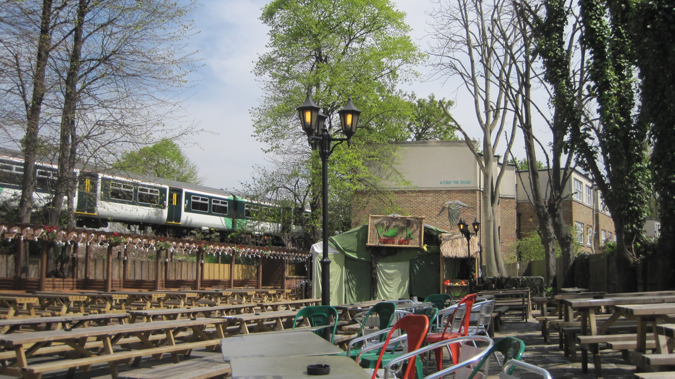 The Duke of Edinburgh pub has a large garden, perfect for enjoying a pint in the sun. But book early. Although it was empty when I visited, they are fully booked for the weekend. I’ve also been told covering the rhino is temporary.