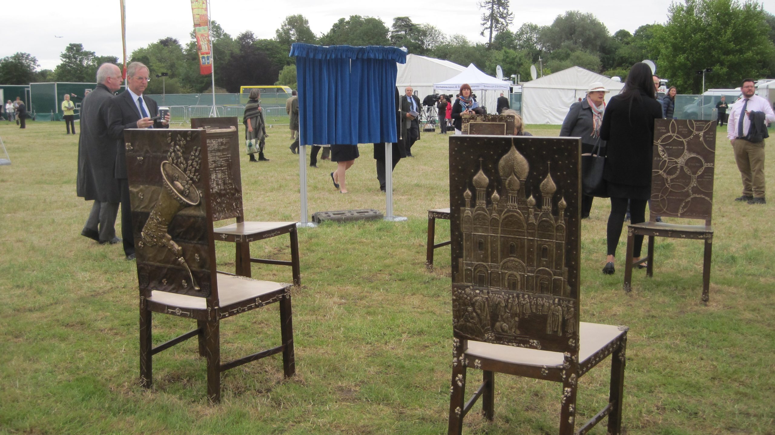 Duke of Cambridge dedicated a permanent artwork called “The Jurors” at Runnymede in 2015. This art installation celebrates the 800th anniversary of Magna Carta and was created by Hew Locke.